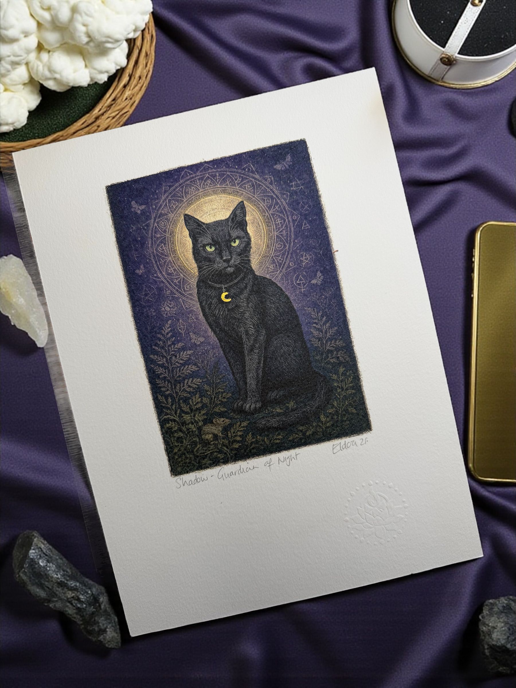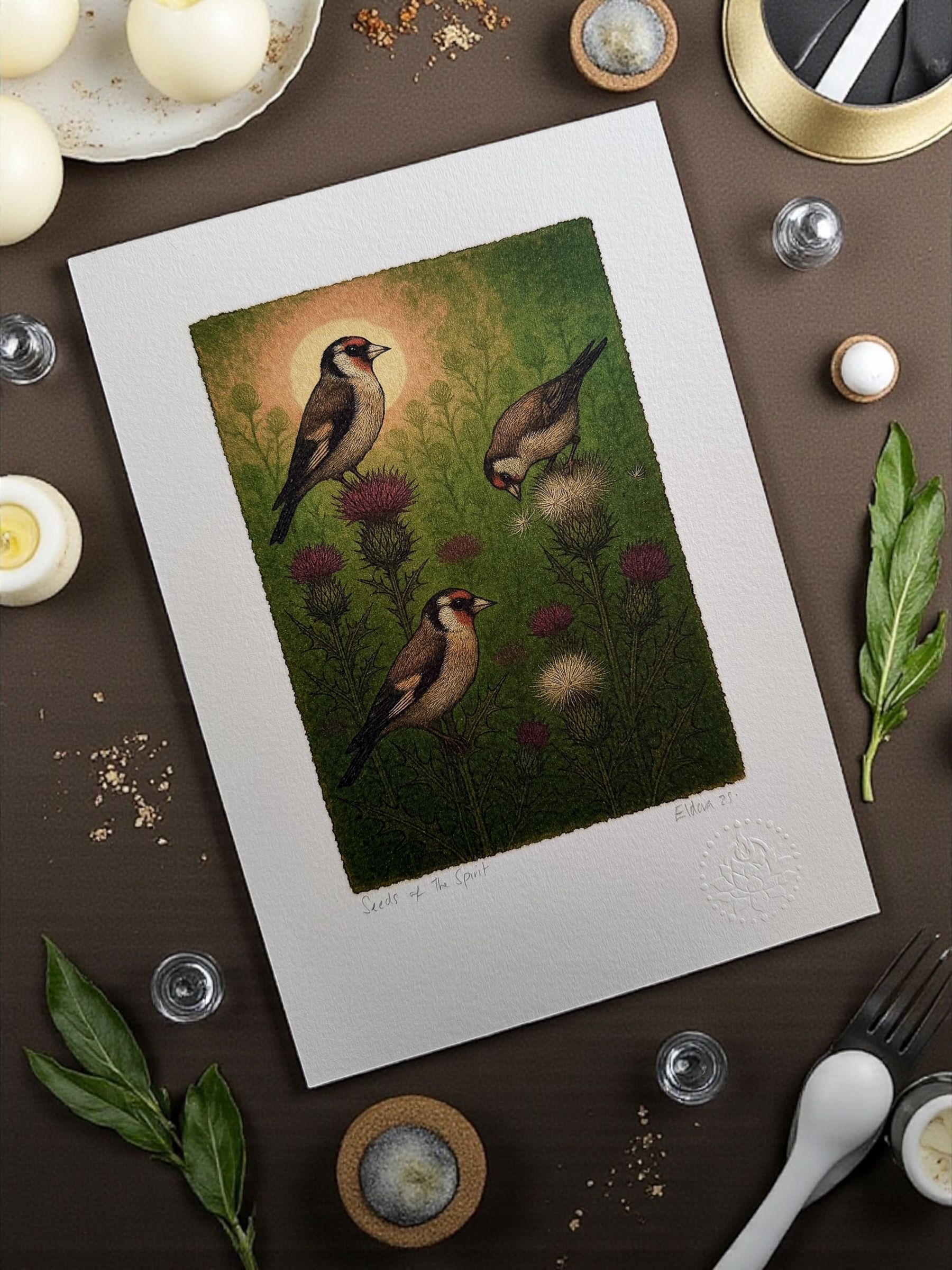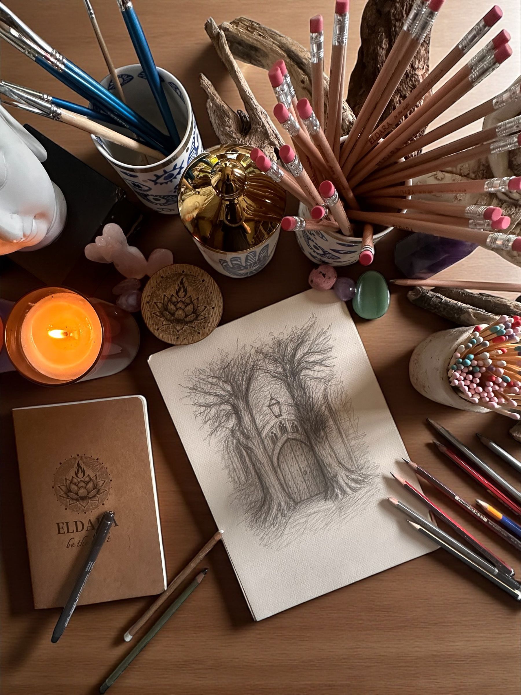 At Eldara, we craft candles, greeting cards, artwork, and ritual pieces to support mindful, intentional living.